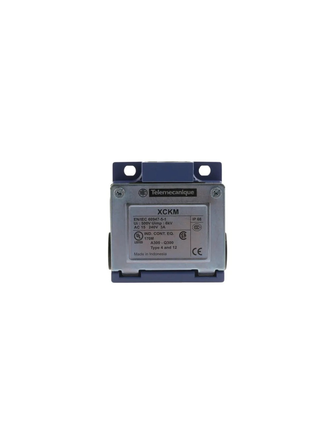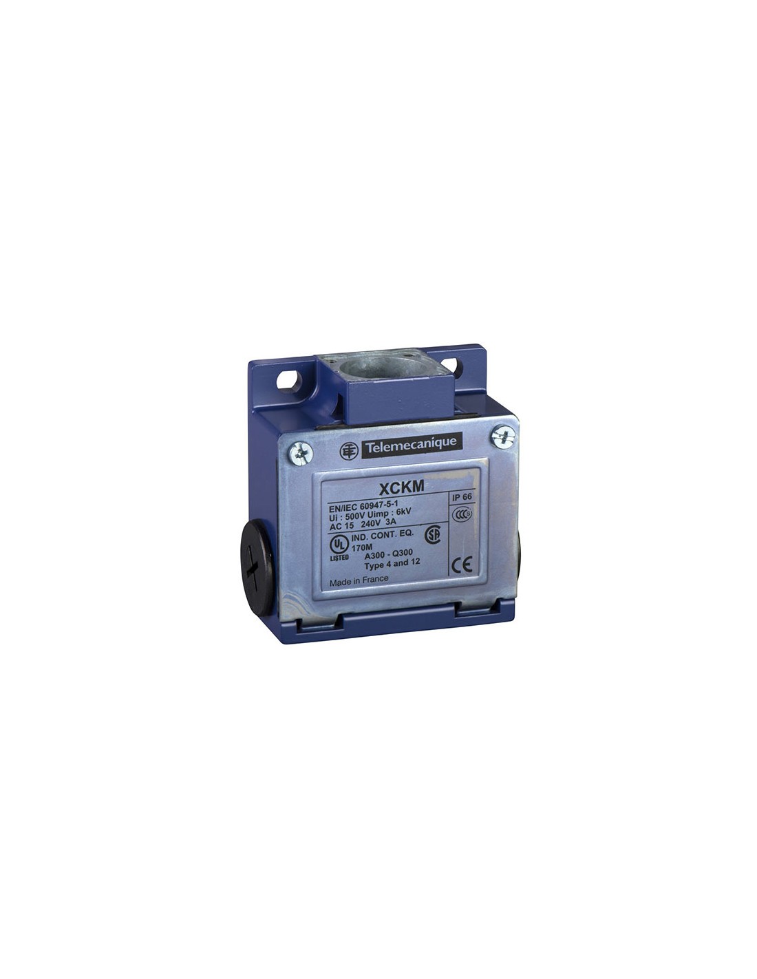 Cuerpo interruptor de final de carrera. Gama de producto OsiSense XC. Formato estándar. Nombre corto del dispositivo: ZCKM. Cuerpo fijo. Compatibilidad con XCKM. Cabeza asociada a ZCKD02/ZCKD05/ZCKD06/ZCKD08/ZCKD10/ZCKD109/ZCKD15/ZCKD16/ZCKD17/ZCKD21/ZCKD219/ZCKD23/ZCKD239/ZCKD41/ZCKD59/ZCKD81/ZCKD91/ZCKD029. Cuerpo de metal. 3 entradas roscadas para pasacables Pg 11. 2 polos. Tipos y composición de contactos 1 NC + 1NA. Funcionamiento de contacto acción rápida. Número de pasos: 1. Contactos bañados en plata. Beneficios: Detección por contacto de objetos rígidos. La oferta más completa para satisfacer cualquier necesidad. Productos de alta calidad , disponibles a nivel mundial, que gozan de una gran reputación. Una oferta completa de contactos de apertura positiva y brusca para un diseño de maquinaria más sencillo y seguro. Aplicaciones: Toda la maquinaria industrial: Embalaje, Manipulación de materiales, Transporte, Mecanización, Alimentación y bebidas, Sector de servicios..