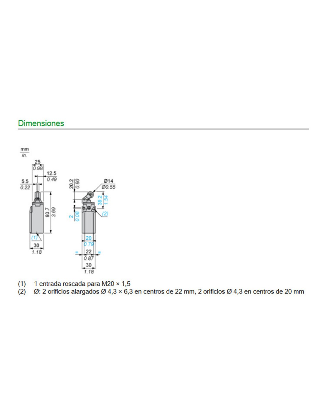 Interruptor limitador XCKN 1NC+1NO M20. Gama de producto OsiSense XC. Formato estándar. Nombre corto del dispositivo XCKN. Diseño del detector compacto forma E. Cuerpo fijo. Cabeza de pistón. Fabricado en plástico. Modo de fijación mediante el cuerpo. Cabezal lineal. Émbolo de palanca de rodillo de retorno de resorte termoplástico. Enfoque lateral 1 dirección. 1 entrada roscada para pasacables M20 x 1,5, diámetro ext cable: 7...13 mm. 2 polos. Tipos y composición de contactos 1 NC + 1NA. Funcionamiento de contacto acción rápida. Beneficios: Detección por contacto de objetos rígidos. La oferta más completa para satisfacer cualquier necesidad. Productos de alta calidad , disponibles a nivel mundial, que gozan de una gran reputación. Una oferta completa de contactos de apertura positiva y brusca para un diseño de maquinaria más sencillo y seguro. Aplicaciones: Toda la maquinaria industrial: Embalaje, Manipulación de materiales, Transporte, Mecanización, Alimentación y bebidas, Sector de servicios..