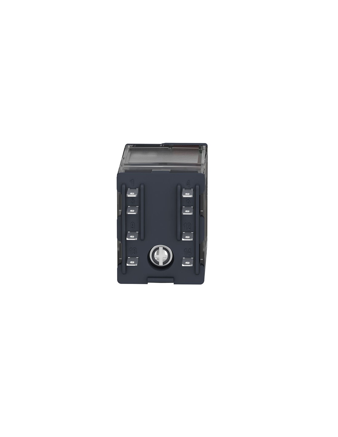 Los relés miniatura RXM son parte de los relés electromecánicos Harmony. Este es un relé de enchufe que se monta en una toma RXZE. Es un relé de 2 CA con clasificación de corriente de 12A, tensión del circuito de control de 120 V CA 50/60 Hz. También ofrece un botón de prueba con bucle y un indicador mecánico para conocer el estado de los contactos. Un LED verde en la parte frontal se iluminará cuando el relé esté encendido. Pantalla de estado con LED: señalización clara durante el día y la noche. Es un producto Green Premium que cumple las normas y certificaciones internacionales como IEC, CE, UL, CSA, EAC, Lloyd's, RoHS y REACH.