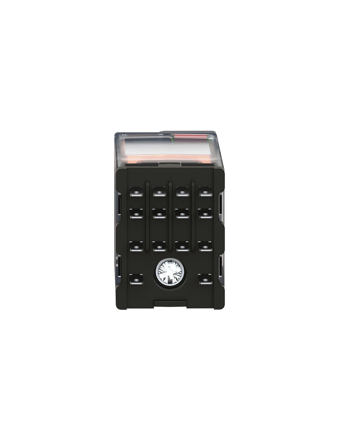 Este relé en miniatura enchufable Zelio RXM tiene una tensión de mando de bobina de 24 V CA y 4 contactos de inversión 4PDT (cuadripolar, bidireccional) con un calibre de 6 A. Dispone de una gran variedad en el número de contactos para el uso con una intensidad nominal alta, con un diseño que ahorra espacio. También ofrece un botón de prueba bloqueable en un solo paso y un LED de alimentación para indicar la disponibilidad. Ayuda a reducir el tamaño de los cofrets y aumentar la fiabilidad de la máquina, ya que puede montarse prácticamente en cualquier lugar. El producto es IP40 y tiene una cubierta transparente que permite al operador inspeccionar visualmente el estado de los contactos. Capacidad de funcionamiento en sistemas automatizados con lógica integrada para complementar las funciones de los controladores lógicos programables (PLC) industriales. Indicación de estado mediante LED, visible claramente de día y de noche.