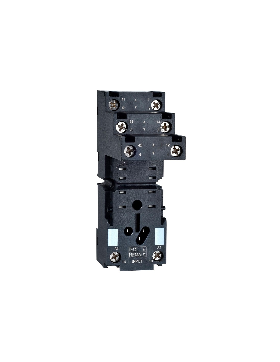 Esta toma de relé enchufable HARMONY RXZ tiene una tensión de mando de bobina de 250 V CA y 2 contactos de inversión DPDT (bipolar, bidireccional) con un calibre de 12 A. Dispone de una gran variedad en el número de contactos para el uso con una intensidad nominal alta, con un diseño que ahorra espacio. Ayuda a reducir el tamaño de los cofrets y aumentar la fiabilidad de la máquina, ya que puede montarse prácticamente en cualquier lugar. Compatible con relé de control conectable. Instalación sencilla y conexión al relé desde su toma. Capacidad de funcionamiento en sistemas automatizados con lógica integrada para complementar las funciones de los controladores lógicos programables (PLC) industriales.