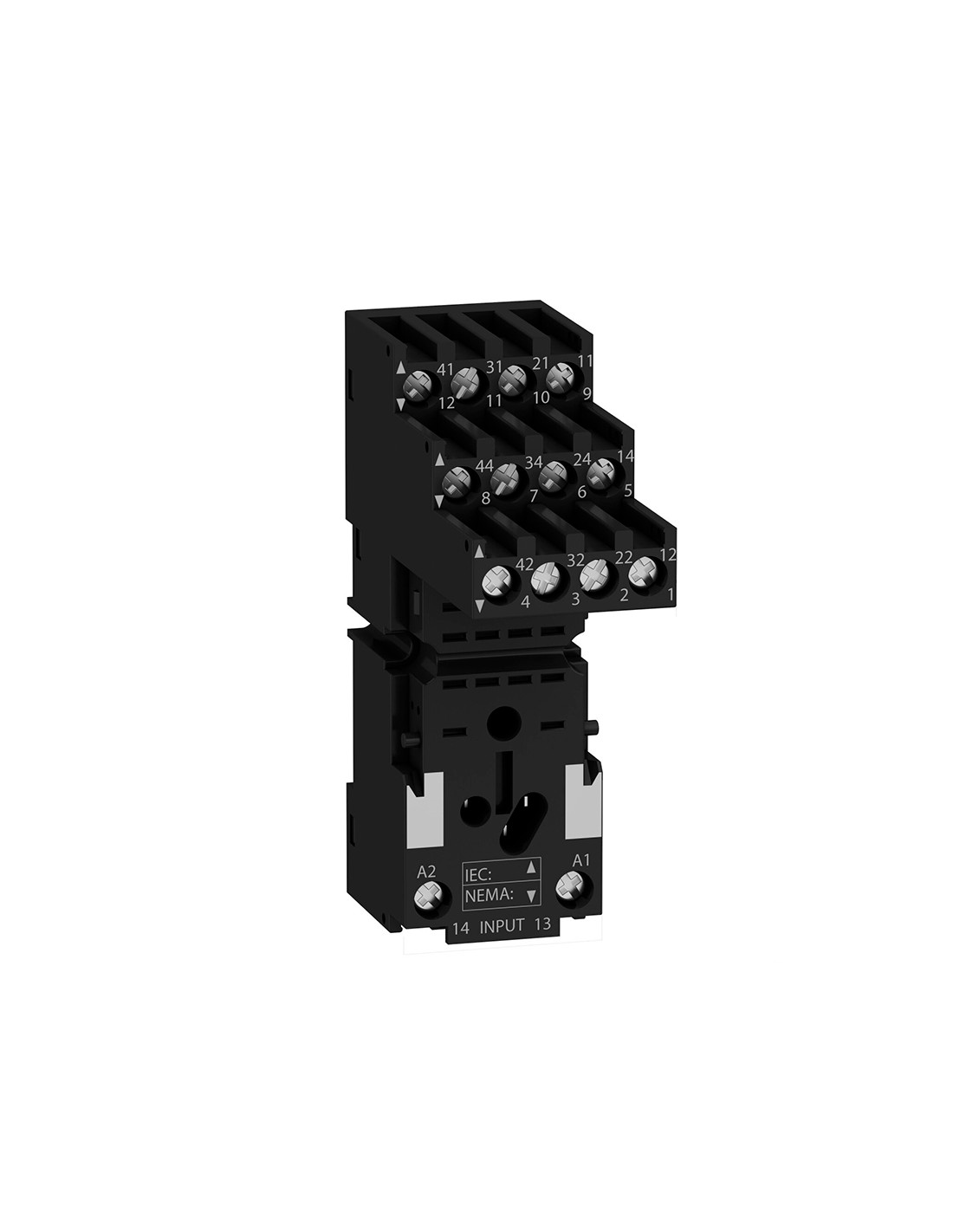 Esta toma de relé enchufable HARMONY RXZ tiene una tensión de mando de bobina de 250 V CA y 4 contactos de inversión 4PDT (cuadripolar, bidireccional) con un calibre de 10 A. Dispone de una gran variedad en el número de contactos para el uso con una intensidad nominal alta, con un diseño que ahorra espacio. Ayuda a reducir el tamaño de los cofrets y aumentar la fiabilidad de la máquina, ya que puede montarse prácticamente en cualquier lugar. Compatible con relé de control conectable. Instalación sencilla y conexión al relé desde su toma.