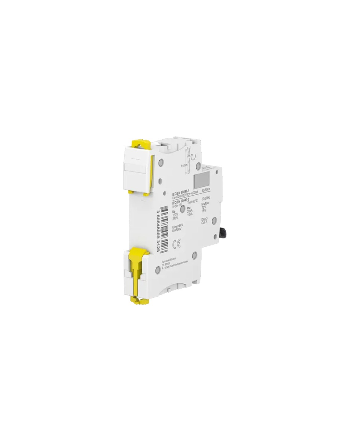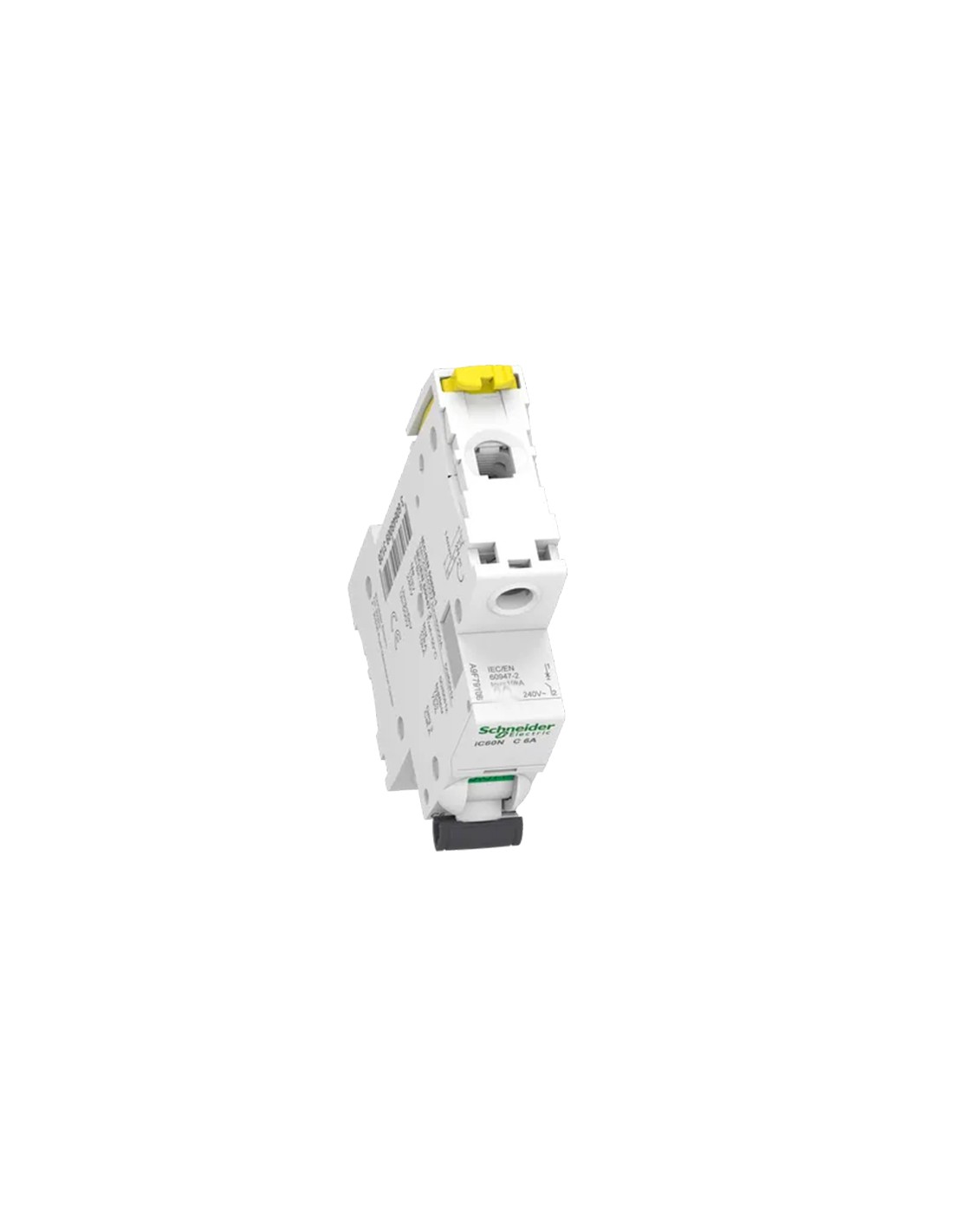 Este Acti 9 iC60N es un interruptor automático en miniatura (MCB) de baja tensión. Consiste en un interruptor automático 1P con 1 polo protegido y curva de disparo C. Puede montarse en carril DIN para su instalación modular. Como interruptor automático, su poder de corte (conforme a IEC/EN 60898-1) es de 6000 A a 230 V CA. Como interruptor automático, su poder de corte (conforme a IEC/EN 60947-2) es de 10 kA a 230 V CA. Este interruptor automático en miniatura protege los circuitos contra cortocircuitos y sobrecargas. Posee un grado de protección IP20 (conforme a IEC/EN 60529) en sus bornes. Se convierte en IP40 una vez instalado en un armario modular con categoría de aislamiento II. Su mecanismo de cierre rápido prolonga su vida útil. Su clase de limitación 3 (conforme a EN/IEC60898-1) reduce el coste de la protección de los circuitos situados aguas abajo. Su exclusivo indicador Visitrip reduce el tiempo de intervención al señalar el circuito defectuoso. Su banda verde Visisafe garantiza la apertura física de los contactos para permitir el mantenimiento aguas abajo.
