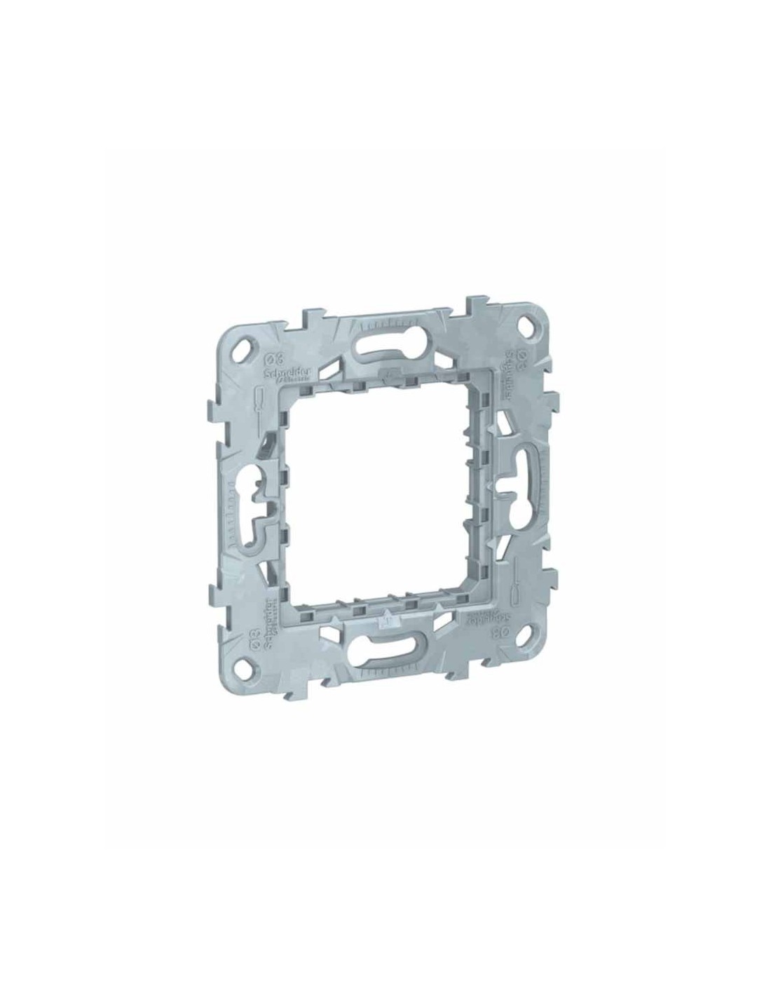 Bastidor metálico sin garras para instalar 1 mecanismo ancho o 2 estrechos de la serie Unica de Schneider.