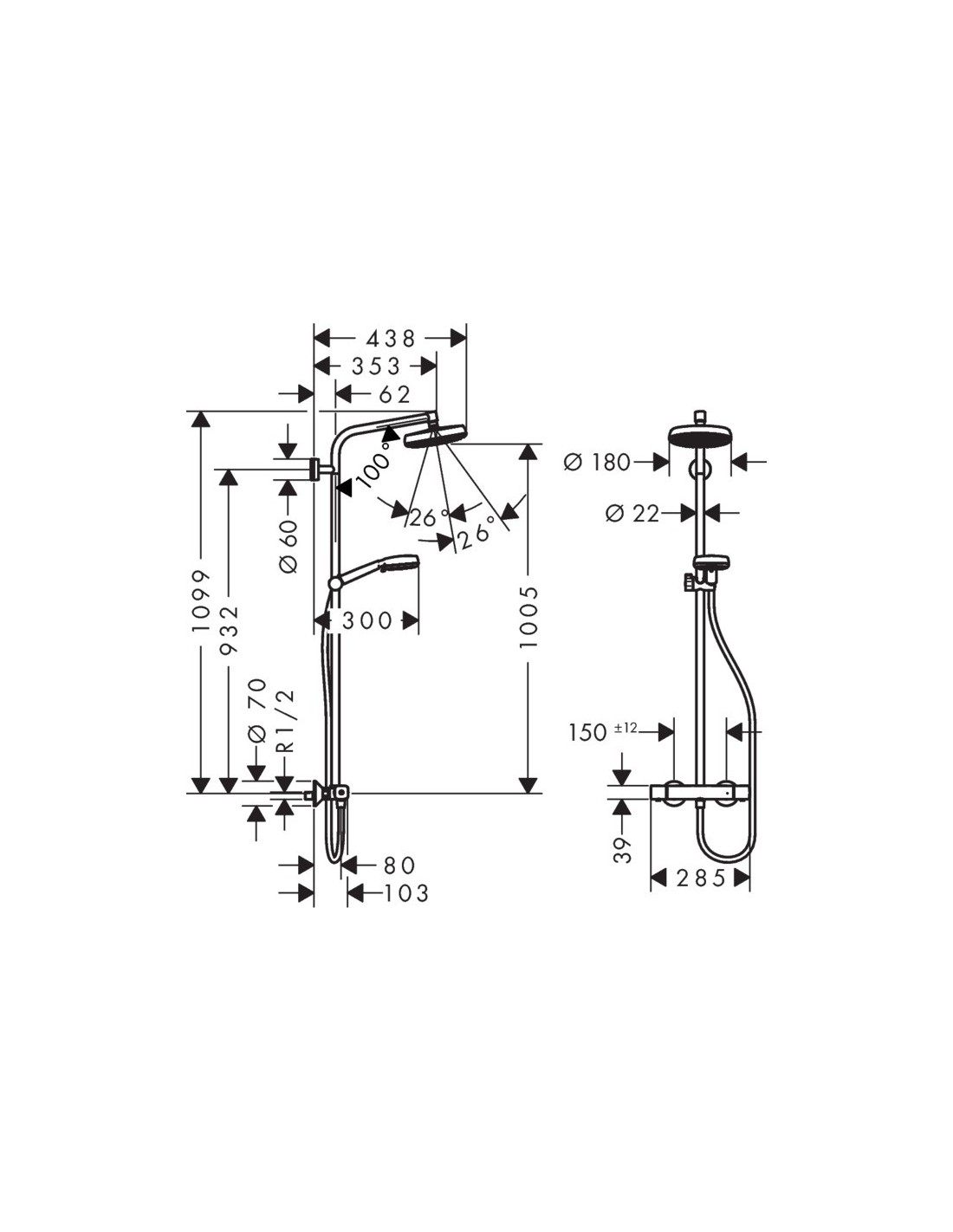 Columna de ducha SHOWERPIPE CROMETA 160 2726440 de Hansgrohe