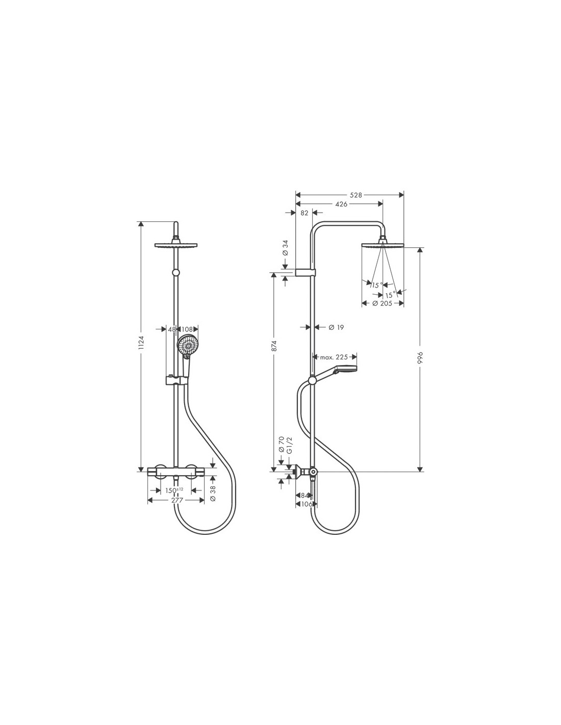 *ducha fija, teleducha, grifo termostático de ducha, flexo, control deslizante, barra de ducha